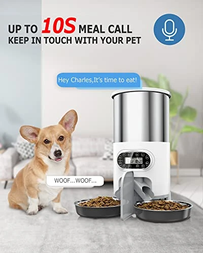 - 【10 SECONDS PERSONALIZED MEAL CALL】 – Tomxcute automatic cat feeders can record 10 seconds of voice. The pet can hear the familiar owner’s voice before each meal, and your dog or cat will not feel lonely. Voice prompts let your pets know when it’s meal time, Whether you are at home or not, don’t worry that they will miss a meal.