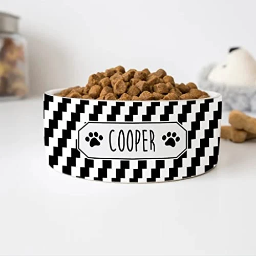 GENERIC Black & White Pattern Pet Bowl, Dog Name Bowl, Cat Name Bowl, Gift For Pets, Ceramic Bowl Available In Two Sizes