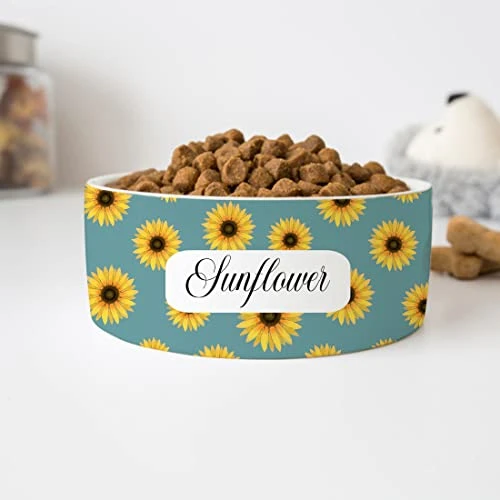 GENERIC Personalized Pet’s Name Bowl, Sunflowers Pet Bowl Customized Name, Food Bowl For Dog, Cat Drinking Bowl, Ceramic Bowl Available In Two Sizes