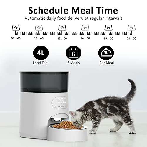 - Dual Power Supply – Use the 5V DC adapter while sustaining the auto cat feeder power via three D batteries(not included) installed in case of power outages, ensure that your pet gets food consistently.
