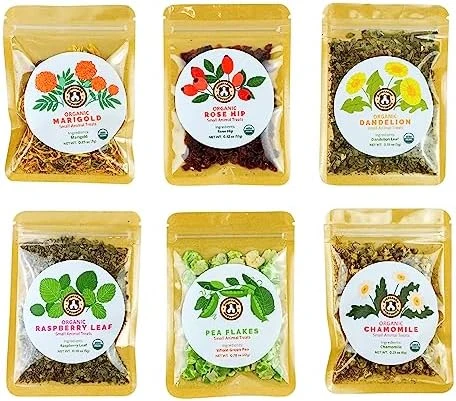 - Convenient Packaging â The GuineaDad Herbal Treat lid has 2 hole feeders so you can control the portion of the treat with 1 hand; The outer packaging blocks out sunlight to keep your treats fresh