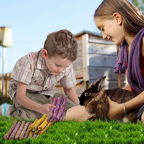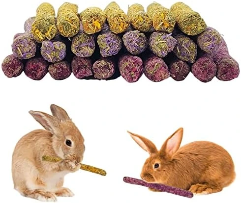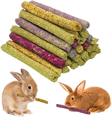 - 【Fun Pets Chew Toys】 Timothy rabbit hay sticks are both a treat for your pet and a toy for you to interact with your pet. Pet chewing sticks they are perfect for hand-feeding to make your interaction with your pet fun,provides small pets with chewing pleasure improve your relationship with your pet and get them into the habit of nibbling.