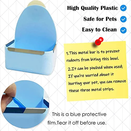 - đ”ăSMALL TIPS when USEăïŒHigh edges allows these bowls hard to be knocked down and the food inside spill.Smooth edges do no harm to pets’ lips and gums.White knobs make them easily fixed on the cages and hung at different places.When using,just unscrew the white knob and fixed it on the cages.It’s easy and comfortable to use.