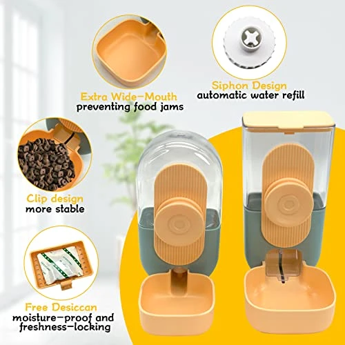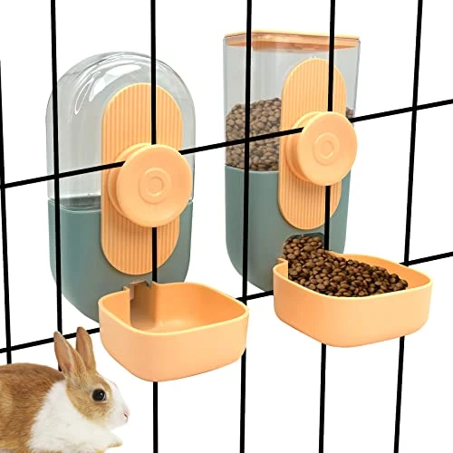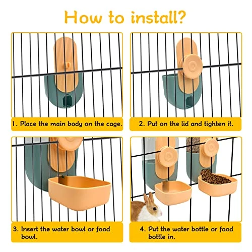- [Material Safety]: The bunny food feeder and water dispenser is made of transparent PET to observe the capacity of water and food, which is sturdy and durable. And all parts are removable for easy cleaning, providing your pet with a healthy eating environment.