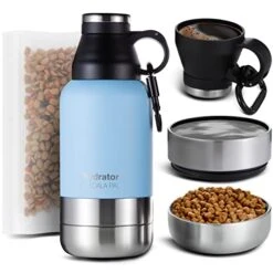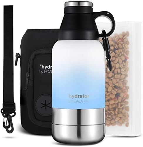 - DOG MUST HAVES – Our stainless steel dog water bottle is double-wall vacuum insulated, itâll keep your beverages hot for 12 hrs or cold for 24 hrs. No more warm water for overheating dog in the summer time. A quick & easy twist is all it takes to feed your dog.