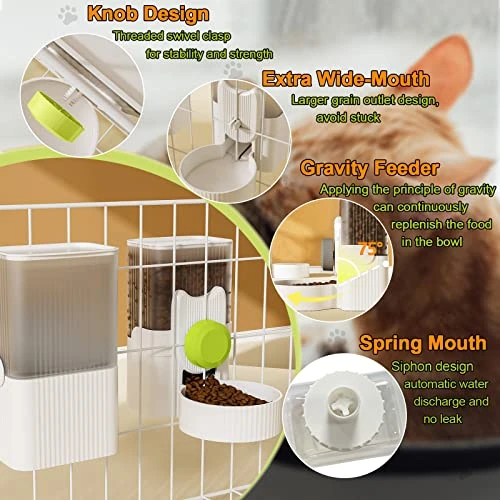 - [Knob Hanging Cage Design]:The hanging cage design of rabbit food dispenser makes good use of space. The bunny water dispenser is specially designed for small pets locked in the cage. The guinea pig food dispenser can also be placed on the ground like a regular feeder