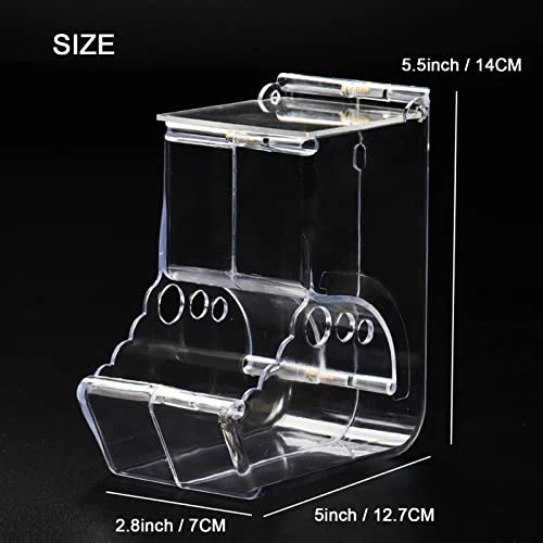 - EASY REFILLING: Top large opening allows for convenient refilling. With a door panel to cover the opening to keep pet food away from dust and bugs. The feeder made of quality acrylic material is durable. Transparent texture 400ml big capacity storage pellets container allows you to monitor food levels and refill in time. The hamster automatic feeder size: 5 x 2.8 x 5.5inch (12.7 x 7 x 14cm). The spoon size: 4.7 x 1.4 x 0.5inch (12 x 3.5 x 1.2cm).