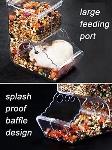 - SPLASH-PROOF BAFFLE DESIGN: Automatic hamster feeder use a baffle at the exit to effectively prevent grain overflow. Prevent your pet from accidentally tipping food and keep the feeding environment clean and save cleaning time. Arc-shaped automatic slide down design, automatic food addition, no food jam, automatic feeding, leak-proof and splash-proof, convenient feeding.