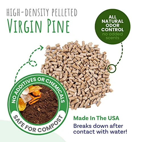 - 100% All Natural Pelleted Virgin Pine: Made in the USA without any harmful dyes, chemicals or additives, and free of the toxins associated with wood stove pellets; Made from wood shavings from already downed trees, so no new trees are cut down for this product; Breaks down easily and organically for safe disposal in your garden, compost, or organic waste bin