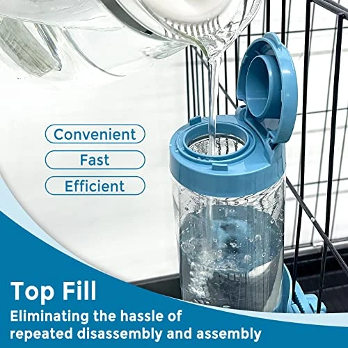 - 【Top Fill Design】The 24oz capacity clear crate water bottle suitable for small animals, like Rabbit, Chinchilla, Ferret, Guinea Pigs, Squirrel, Hedgehog. Don’t be afraid of pets running out of water. Easy to fill water with the top cap and no need to take off the bottle.