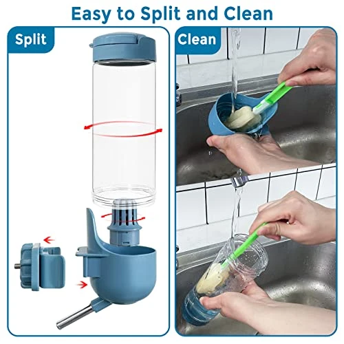 - 【Softer reminder】✅ Tip 1: Most of time the water dispenser leaks is caused by the remainings of food, please take off the bottle and wash the mouth under water, the problem can be solved.✅ Tip 2: It is recommended that you keep the top lid tightly closed after filling the water bottle to avoid small animals choking on water if the water flow sped up under atmospheric pressure.