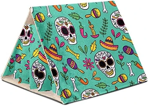 - Cute Design – Unique tent-like design, double-opening shape can be easily entered, the triangle shape is stable and firm. The outer fleece is printed with beautiful patterns, creating a unique nest habitats for your pet friend and bringing a snug place indoors for your pet to play, hide, sleep and rest.