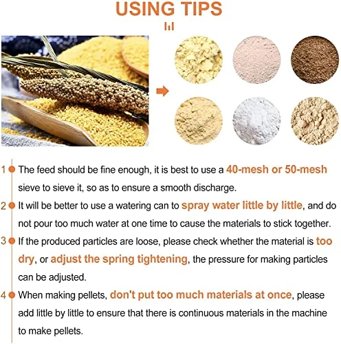 - 2.ăMultiple applicationsă: This animal feed pellet machine can make bird food, fish food, chicken food, rabbit food, cat food, dog food, sheep food, etc., and easily experience the fun of making pet food.